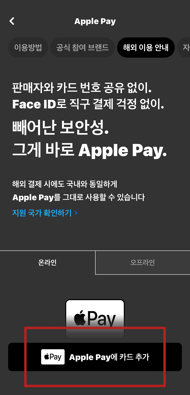 한국에서도 애플페이를 사용할 수있는 곳이 많이 생겨나고 있고, 일본을 자주 방문한다면 일본에서 애플페이 사용이 매우 유용하므로 아이폰을 사용한다면 애플페이 사용을 추천합니다.