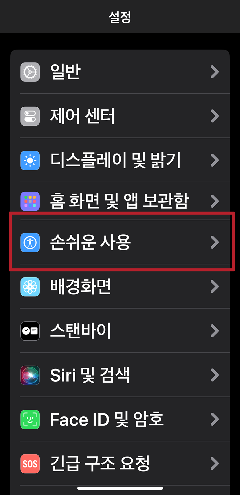 설정에서 손쉬운 사용으로 들어갑니다.