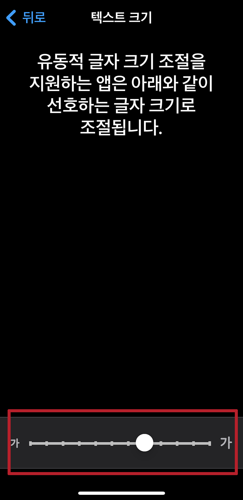 아래의 슬라이드를 조절하여 글씨 크기를 크게 하거나 작게 합니다.