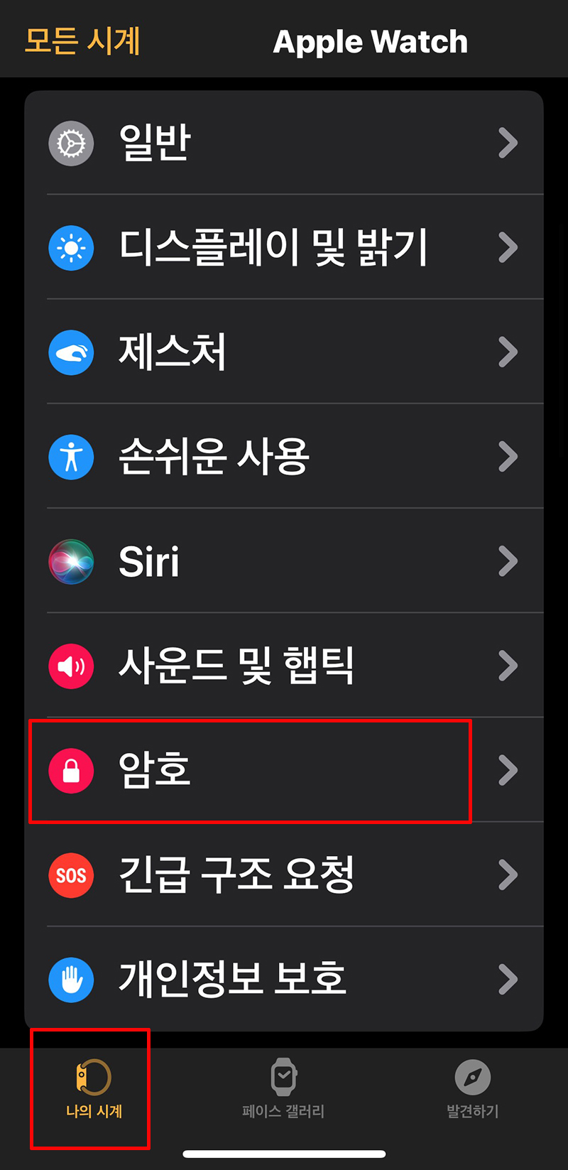 아래는 아이폰에서 애플 워치 앱을 이용한 설정 방법입니다. 워치 앱으로 들어갑니다.
