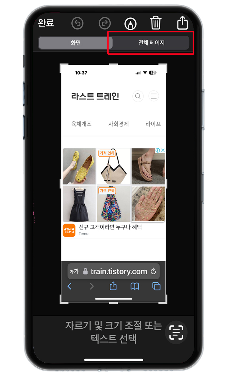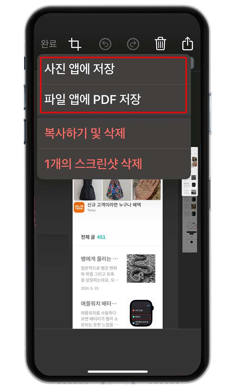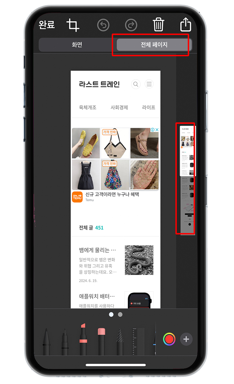 아이폰 전체화면 스크롤 캡쳐하는 방법