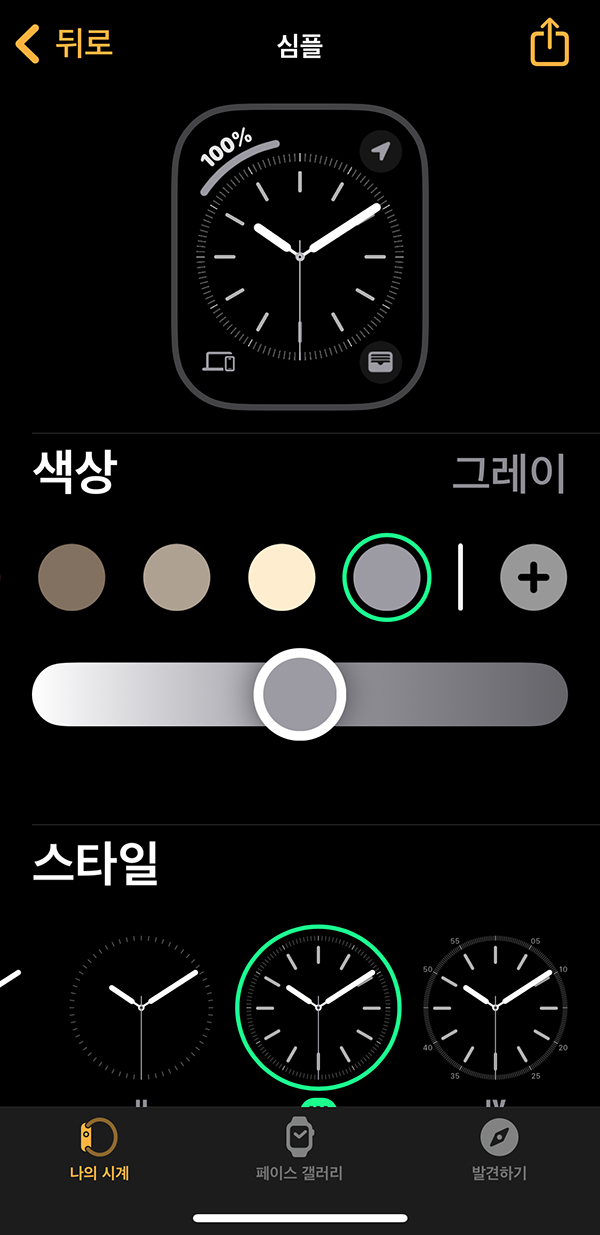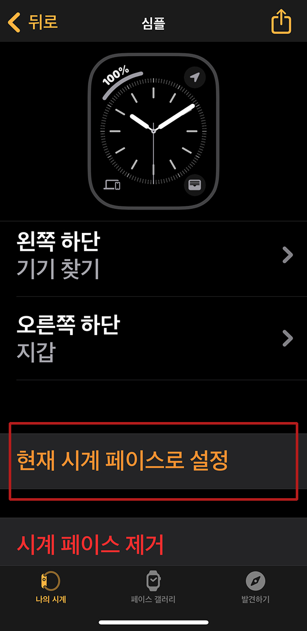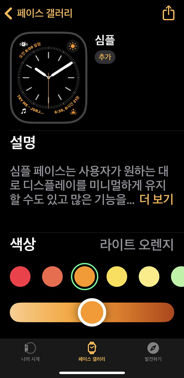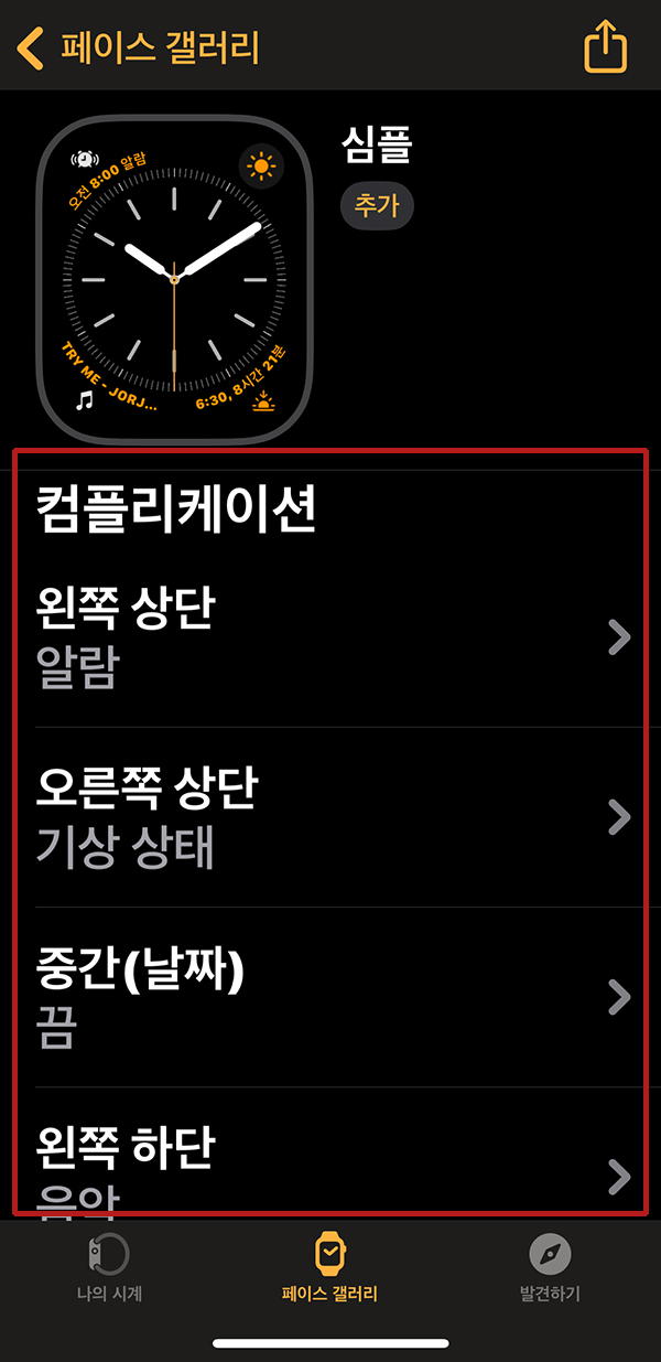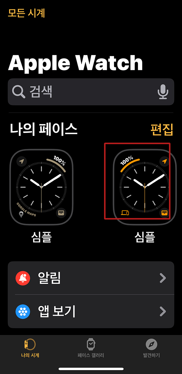나의 시계로 돌아오면 아래와 같이 심플 페이스가 저장되어 있습니다.
