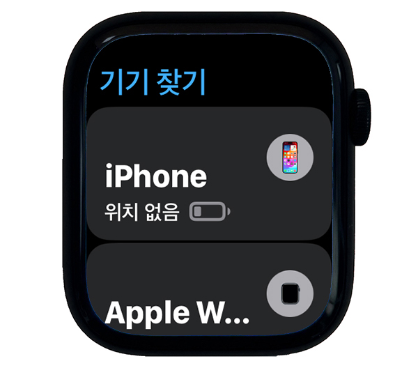 왼쪽 하단의 기기 찾기 컴플리케이션을 누르면 아이폰을 어디 두었는지 알 수 있게 됩니다.