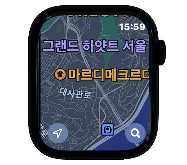 오른쪽 상단 지도 컴플리케이션을 누르면 애플지도가 펼쳐집니다.