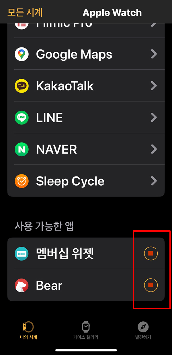 애플워치에도 아이폰에서 다운로드한 앱이 정상적으로 어플이 설치되었습니다.