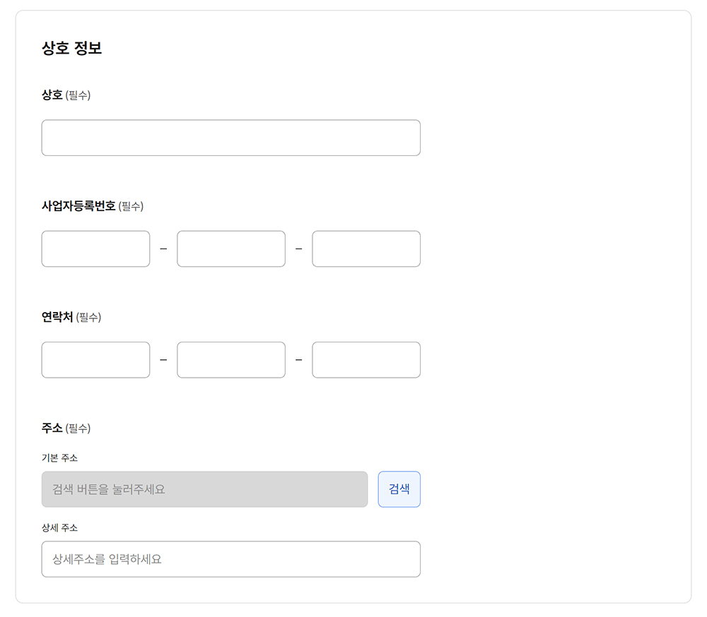 상호 정보를 입력합니다.