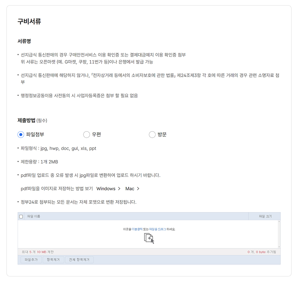 구비 서류를 첨부합니다.