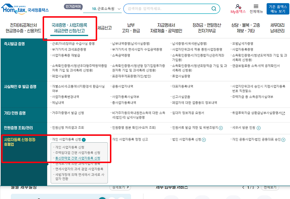 사업자 등록증 인터넷 신청