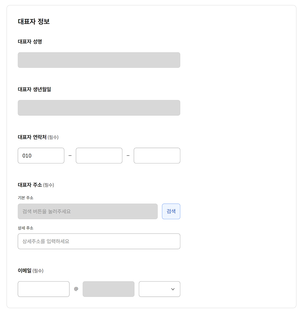 대표자 정보를 입력합니다.