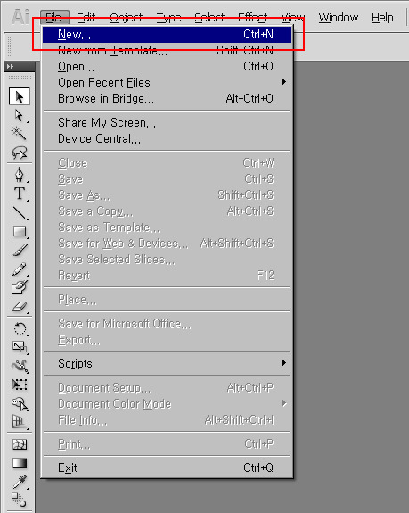 New 클릭 - 새로운 도큐먼트를 생성합니다.