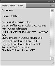 작업 중 파일의 크기, 이름, 컬러 등의 정보를 보여 줍니다.