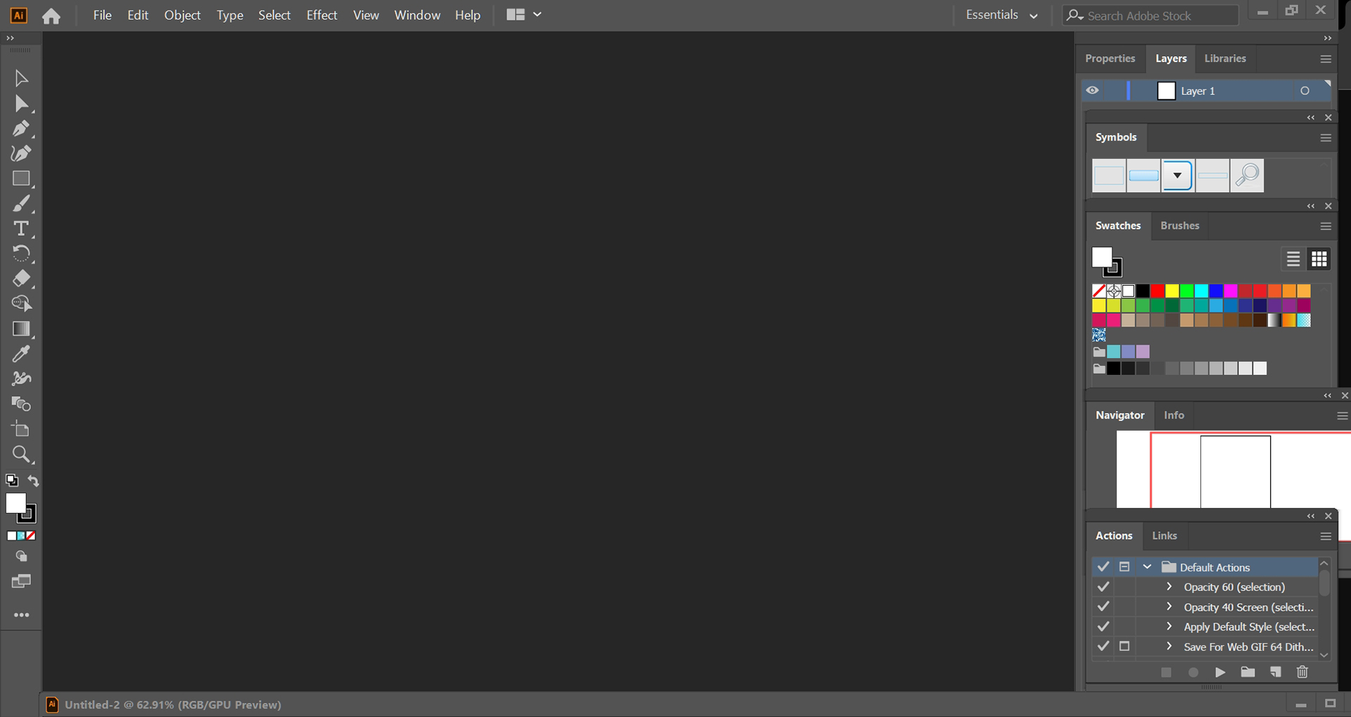 일러스트레이터를 실행하면 좌측이 툴이고 우측이 패널입니다.