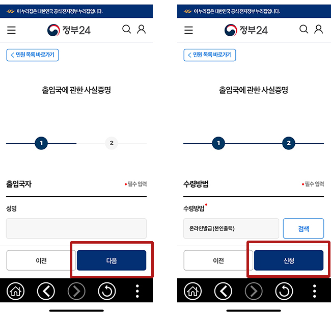 인터넷과 스마트폰으로 출입국 증명서 신청 및 발급 받는 방법