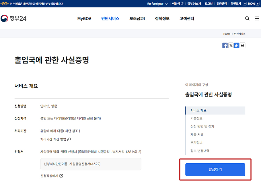 출입국에 관한 사실증명 | 민원안내 및 신청 | 정부24