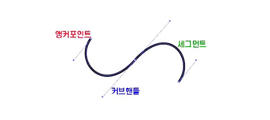 앵커포인트를 클릭하면 포인트와 커브핸들을 이용하여 수정할 수 있습니다.