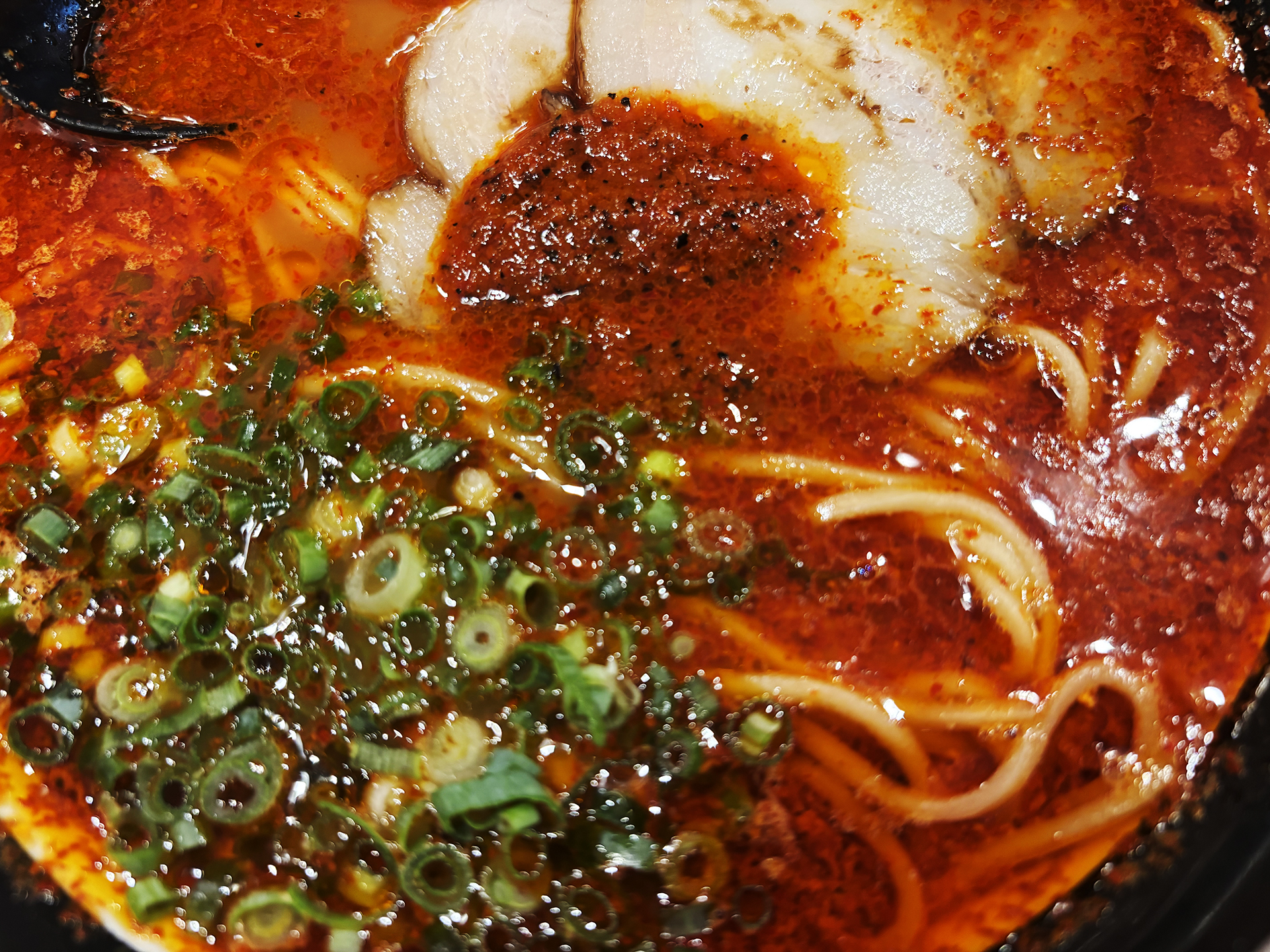 차슈와 통깨가 들어가 파의 양은 라면의 3배. 라드(돼지 기름)를 사용하지 않고 흰깨 착즙유로 마무리했습니다. 콜레스테롤을 걱정하시는 고객님들께도 추천해 드립니다.