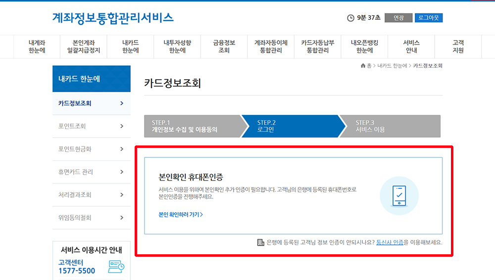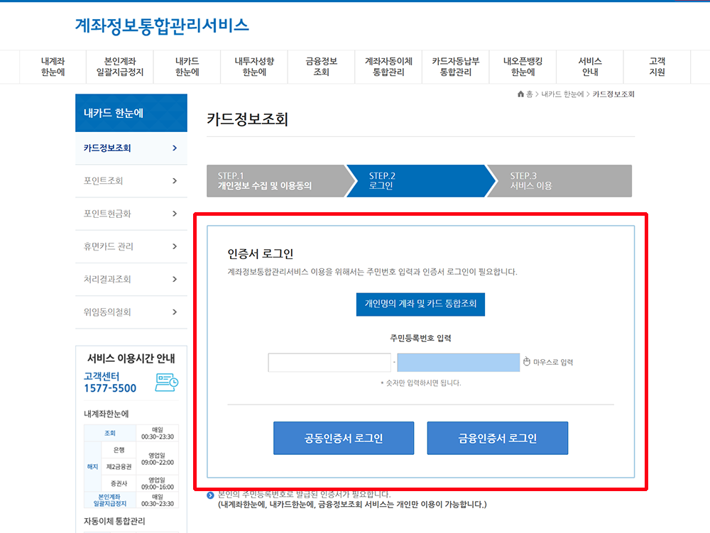 본인의 카드정보, 결제예정금액, 최근 이용대금, 포인트 정보를 조회하고 포인트를 현금화할 수 있는 서비스입니다.